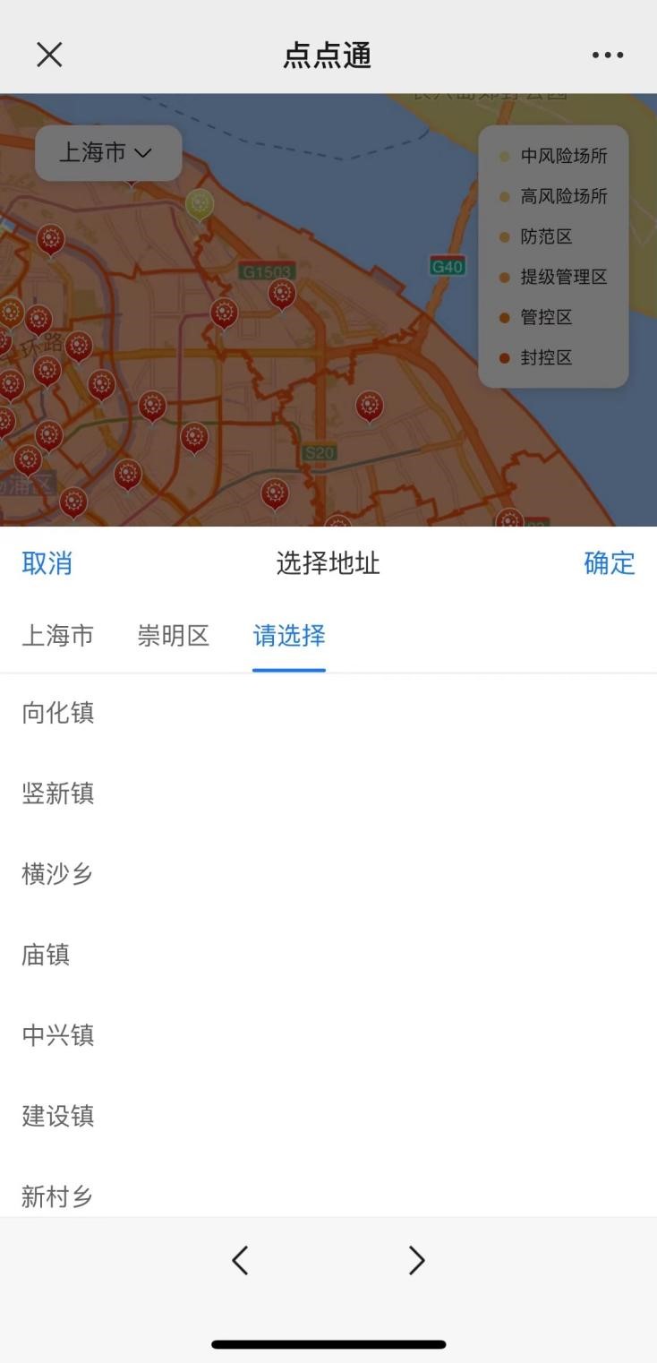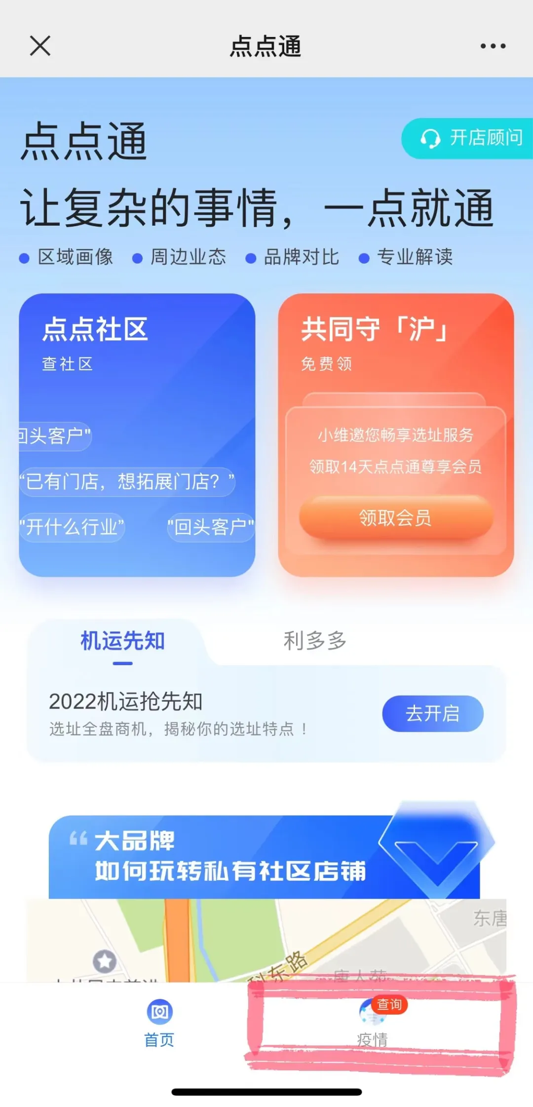 ▲ 街道疫情查询: 进入点点通主页,点击右下角疫情查询板块。